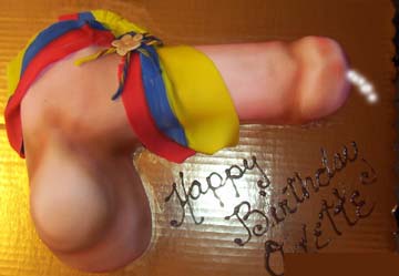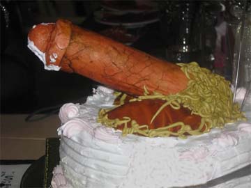 Exploding dick cake with a balloon that pops in the head
