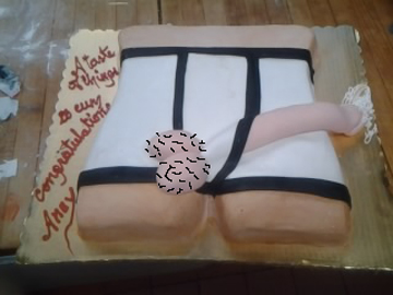 cross eyed little dick sexy bow tie and g-sting shape cake