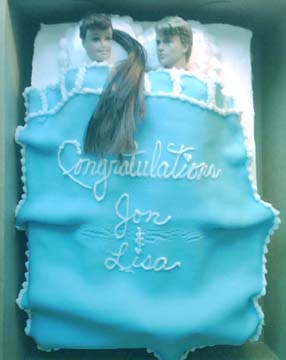 Erotic two dolls tucked away in bed cake